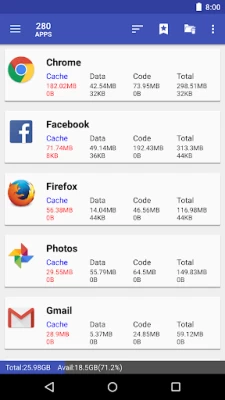 ★ list applications by either cache, data, code, total size, or app name