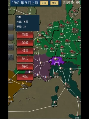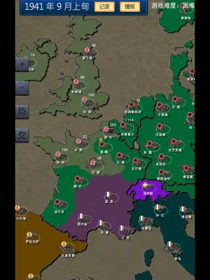 模拟二战的战略游戏,竖屏设计,适合单手游戏,游戏以整个欧洲为地图,玩家可以扮演英国、德国、苏联等二战势力。带领这些势力取得胜利。