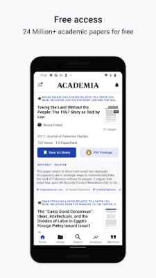 Use the app to: - Discover and read new research - Save papers in Library and read them later in-app or on desktop - See who is reading your papers and profiles - Search for scholarly research on thousands of topics - Find and connect with like-minded scholars - See what friends and colleagues are working on