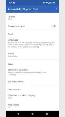 You can perform the specified action by long pressing the home button. Please select "Accessibility Support Tool" in the settings of the digital assistant app.