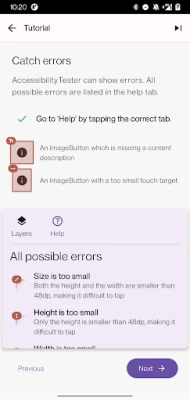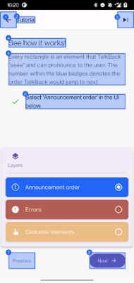 AccessibilityTester is an app intended for developers, tester, designers and everyone who creates apps. It shows how screen readers sees your screen at one glance and quickly identifies possible issues. It helps you to improve the user experience for your visually impaired users.