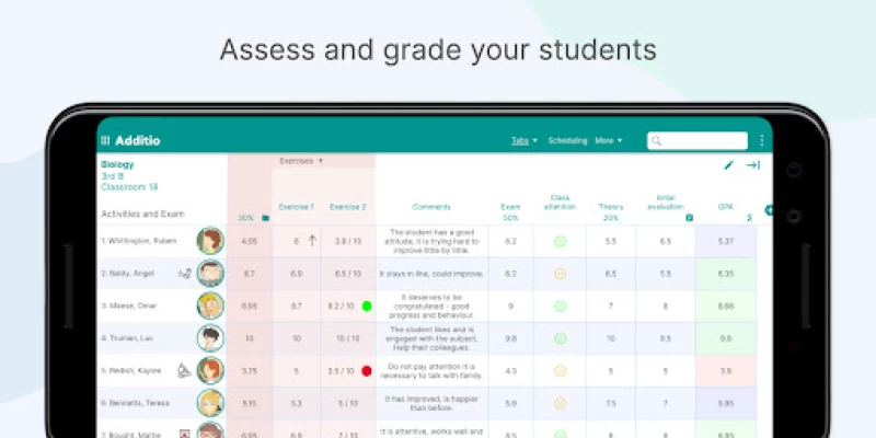 Additio App is the app you need to manage your classes in an easy and intuitive way. From students’ assessment to lesson planning and class scheduling, Additio App unifies management, assessment and communication in an easy-to-use app.