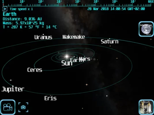 Besides simulating space flight this app can also be used as a planetarium, with all known planets shown in real scale with their accurate keplerian orbits. It can also be used as a star chart and exoplanet explorer, showing all solar systems with confirmed exoplanets within 50 light years from the Sun.