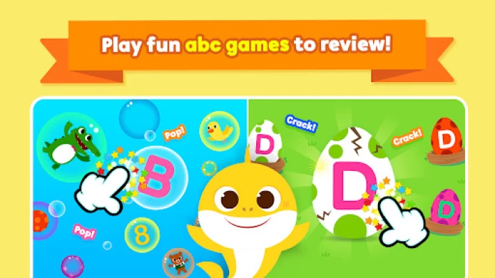 В приложении Baby Shark ABC Phonics вы найдете множество интерактивных и динамических игр, которые помогут сделать первые шаги в изучении алфавита!