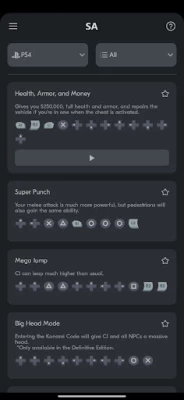 This application contains all the cheat codes for versions V, SA, IV, III, VC and other auto series game.