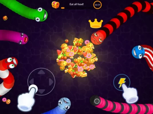 At the beginning of the game you spawn as small slither and your main goal is to survive. But if others run into you, then they will explode, and you can eat their remains! In Snake, you have a chance to win even if you're tiny. You can swerve in front of a much larger player to defeat them, no matter how big you are! Unlike other io games, you have a fighting chance even if you're tiny!