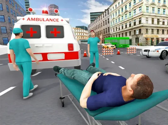 Sound real ambulance sirens and drive fast through city streets past busy rush hour traffic to rescue injured people. Jump out of your ambulance to perform first aid like applying bandages, using defibrillators, giving medicine, all to help stabilize the patient. Help the patient safely onto the stretcher and into the ambulance, it's now time to get them back to the city hospital on time and safely.