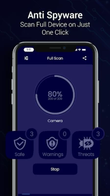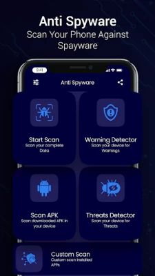 Anti spy detector app is designed to detect & remove spyware & malware from your device. The app provides a comprehensive anti spyware scanner also with anti malware scan that scans your device for any malicious programs. The anti spy detector app also offers hacker protection by identifying any potential vulnerabilities in your device's security.