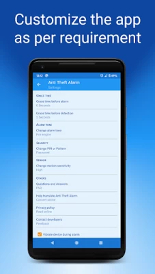Anti-theft alarm makes your device inoperable to the thief even after he restarts the phone or kills the app. The alarm continues to ring until the right password is entered.