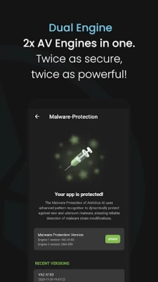 If the malware becomes a new threat to phone security, all global users are immediately "vaccinated" against it without having to carry out a single Antivirus AI spyware security update. The more you use anti malware scan, the better virus detection & the higher overall hacker protection for all users worldwide.