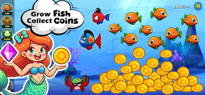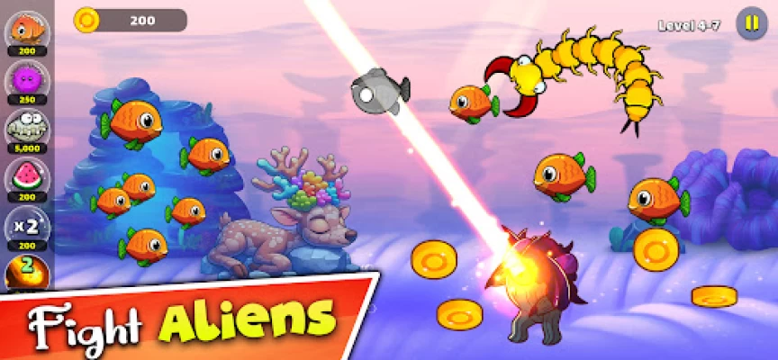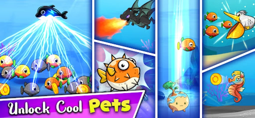 Feed to grow fish. Collect coins. Discover skillful pets. Shoot naughty monsters/aliens.