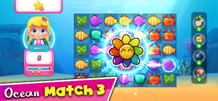 - Match 3: more fun with 200 levels of the classic Match 3 game, with beautifully cute ocean tiles.