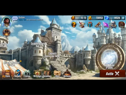 Summon Heroes: Call upon mighty heroes with unique abilities to join your cause.