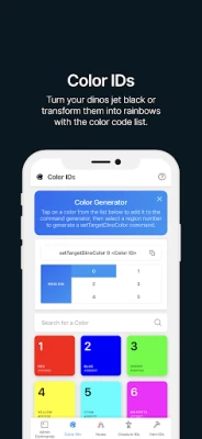 The Ark IDs app comes with a full list of all Ark color IDs allowing you to color your dinos.