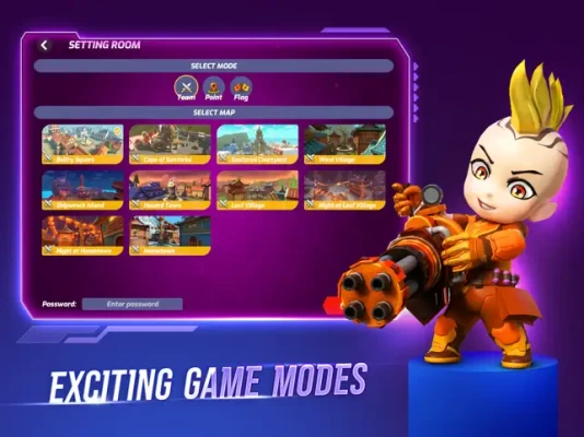 With the fast and captivating gameplay, you will join the real battles with the modes Team Battle, Capture the Flag, Capture the Point. The game is easy to get familiar with and catch up, but it also has many skills to challenge you.