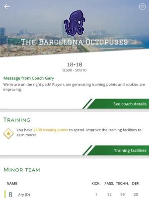 Become the manager of your own football team and lead your players to the ultimate reward: becoming the best coach and winning the Grande Cup!