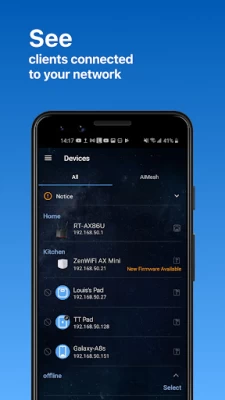 The ASUS Router app unlocks the power to manage your network in just a few taps whenever you want, wherever you go. We are aiming to provide the best WiFi and Internet-surfing experiences you have ever had with these comprehensive features.