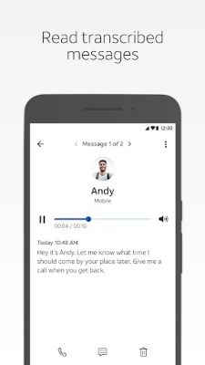 Note: Receiving voicemail on this app does not count against your data rate plan allotment while on the AT&T network. A cellular data or Wi-Fi Calling connection is required; AT&T Visual Voicemail does not work on a Wi-Fi only connection. International data and messaging charges apply to receiving, replying to, and forwarding voicemail messages while roaming internationally. Data and messaging used in replying to and forwarding voicemail messages via SMS, MMS, or e-mail are counted against your data and/or messaging plan, and applicable charges apply if data and/or messaging plan limits are exceeded. Data charges may apply when downloading this application or using text transcription. This app may send a free one-time SMS to AT&T to retrieve mailbox information.