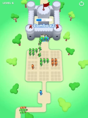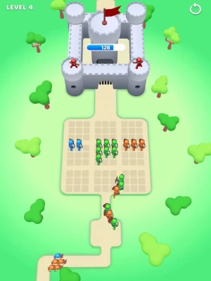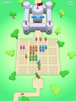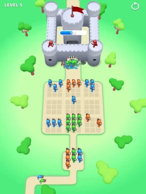 Sort your units on the battlefield. When the squad is full, they will attack the enemy fortress. Be careful! There's only so much space to prepare your soldiers!