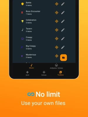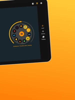 Audio Forge lets you craft the ambiance for your RPG gaming sessions. Select the music setting (exploration, battle...) and the active ambiances (rain, thunder...) and let yourselves be immersed in your tabletop game.