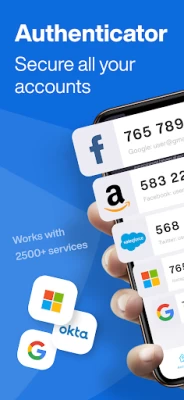Use the Universal Authenticator for more than 2500+ services such as: Microsoft, Google, Duo, Okta, Intune Company Portal, Battle net, Lastpass, Authy, id me, Pingid, Salesforce, Battlenet, Secure ID, RSA, Blizzard, Twilio, Thomson Reuters and many more.