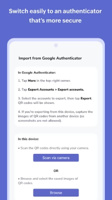 - Users can also migrate their existing online accounts to OneAuth easily from Google Authenticator.