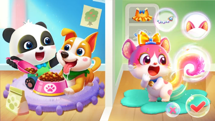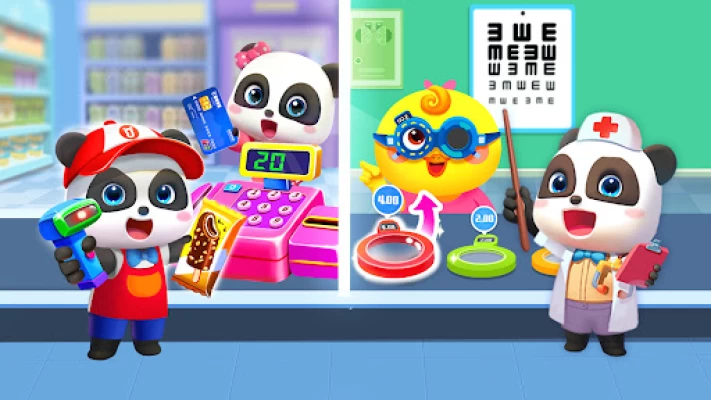 There are more than 100 fun areas in Baby Panda World! In the simulation games, you can enjoy shopping in the supermarket or going to the movies. Want to go to the amusement park? Plenty of entertainment awaits you!