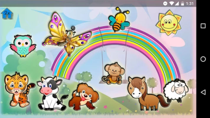 Features: ------------ #1: Interactive scene: Learn and play with different colourful objects(swings,kitty,balloons,rain,baby pool,bird). #2: Baby Clock: Learn numbers by playing with clock, interact with fun candies and different shapes. #3: Baby Zoo: Learning animal sounds has never been so easy and enjoyable. #4: Bubble Colours: Learn colours by popping fun colourful bubbles. #5: Cloudy fruits: Learn fruit names by playing with hanging fruits and alphabets.