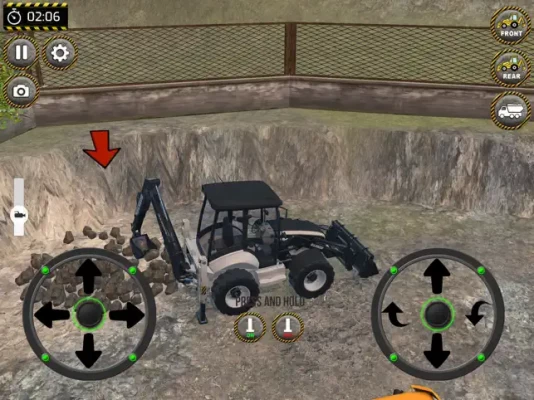 This is the only game where you can use the backhoe loader and the truck together. You will load the earthworks and stones on the truck, take them to the dump site and unload the dumper.