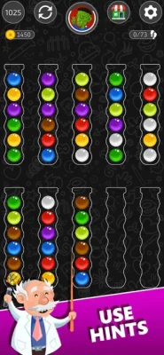 Sort balls into tubes with HINTS. It is a smooth, fast, relaxing, and free ball puzzle game.