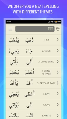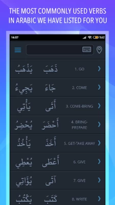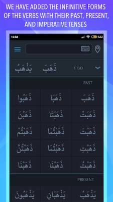 Basic Verbs in Arabic application contains the most frequently used basic verbs and their verb conjugations that are necessary for you to learn Arabic more easily.
