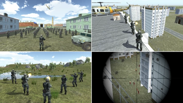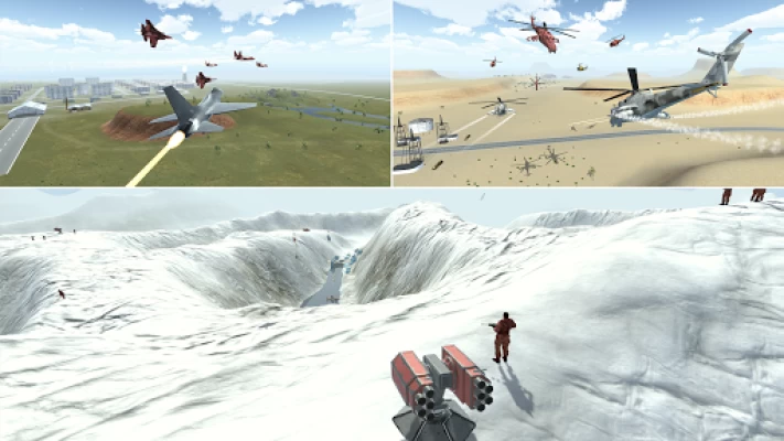 Command great battles with large numbers of soldiers, jeeps, tanks, helicopters, aircrafts and other units.