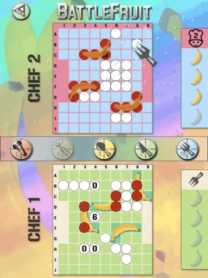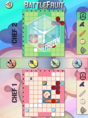 Based on the classic sea battle game but now with kitchen utensils and fruits, instead of bombs and ships. Original new rules, many more ways to locate your opponents' fruits, but remember not to hit the ice cubes, or you’ll be frozen one turn.