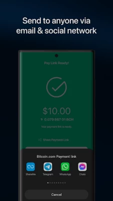 Send a payment link to anyone using any messaging app. Funds are received/claimed instantly with just one click.