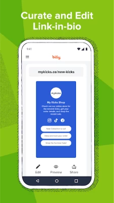 * Link-in-bio: Create and customize your link-in-bio page, organize and track your links and social icons, share content