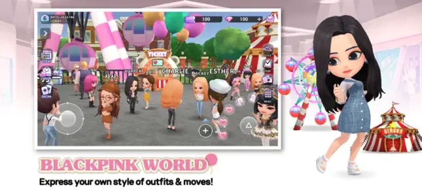 Customize your members with stunning outfits and play mini-games with your friends in BLACKPINK WORLD.