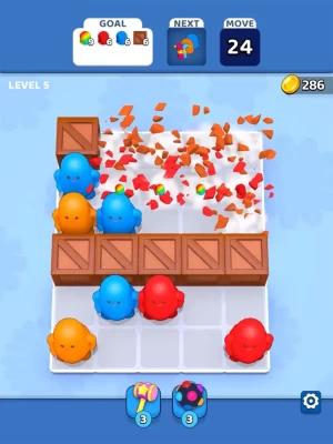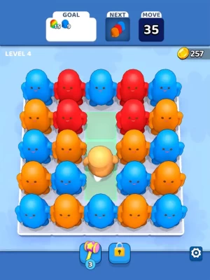 Tap or drag objects on grids and try to match at least 3 same colors. There are jokers so you can use a joker if you are missing one color. After every move 3 new objects come, so be careful board is getting crowded unless you blast colors. Have fun blasting around!
