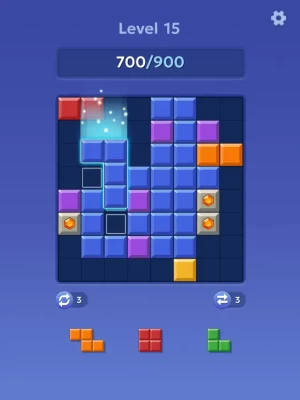 - Drag and drop the blocks onto the game board to create complete rows or columns