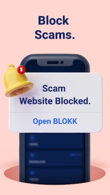 BLOKK is not a virtual private network (VPN) but works by using a VPN connection on your device to block trackers and scams. This allows BLOKK to filter trackers and scam sites, providing you with privacy and app tracking protection right from your phone.