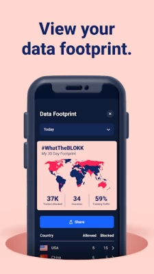 BLOKK filters what your phone is sending back to apps and websites, blocking over 440,000 sites that are known to compromise your privacy or security, including trackers and scams.