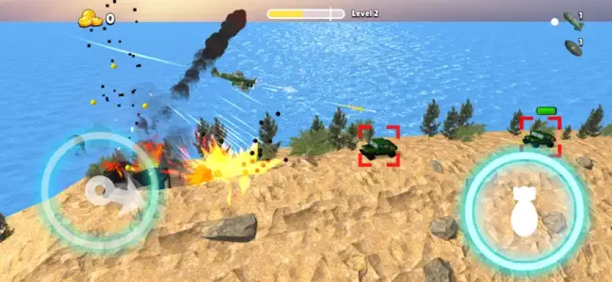 This realistic shooting game immerses you into World War II air battles: drop bombs on enemy armored trucks, tanks, anti-aircraft vehicles, radars and warships, shoot enemy aircrafts, avoid homing missiles. Earn money and upgrade your plane's engine, armor and wings. Install new air cannons and bombs on your plane, upgrade your weapons, build your squadron. You'll start with basic airplane and gradually get to modern jet fighter. If you want to dive into the world of warplanes and warships, feel 1939-1945 fights and air duels, then this arcade warplane simulator game is for you.