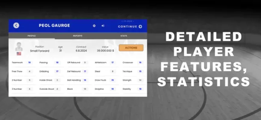 Boss Basketball Manager 2023 offers an unlimited basketball management game experience with its simple and comprehensive screens.