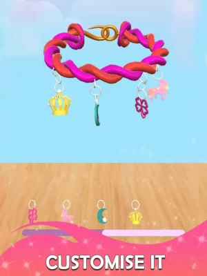 It has a variety of style designs to choose from, the ability to pick the color of the threads, beads, and pearls you want to make your bracelet with, a wide selection of hooks, charms, and stickers to decorate your bracelets, and boasting your bracelet designs by sharing it with your friends. The entire gameplay is easy to learn and master in an ASMR game-like experience.