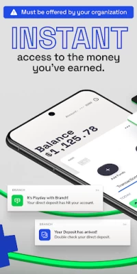 Branch pushes money into your wallet the moment your company pays you. No more waiting for bank delays or paper checks.
