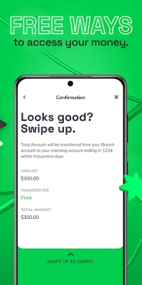 **There is no cost to use the app or Branch debit card. However, you may incur a small fee if you choose to transfer your funds from the Branch account to an external debit card or account instantly.