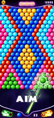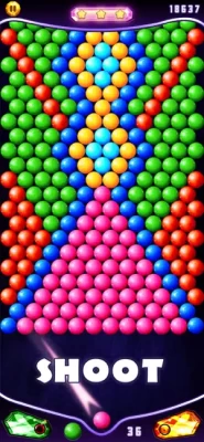 Drag your finger to move the laser sight in the direction of the bubbles. Lift your finger to take a shot. Match at least 3 bubbles of the same color to pop the group and win points. Shoot and pop all the colored bubbles to level up.