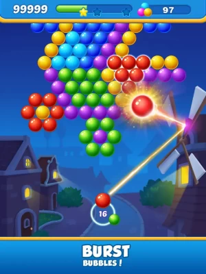 Bubble Shooter - Mania Blast: a highly addictive bubble pop adventure!Aim, tap and shoot to burst 3 or more bubbles of the same color! Experience the astonishing journey across over 1000 bubble bursting levelsAre you ready to burst some bubbles?