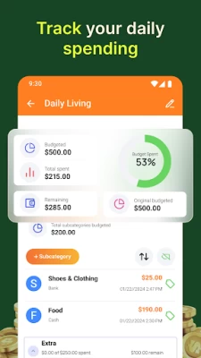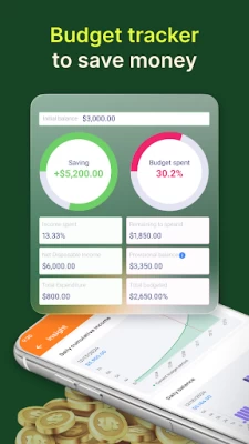 Money Manager Expense And Budget lets you access a dashboard to view your cash flow, earnings, and spending. The Spending Tracker Pro feature allows you to monitor transactions with a bar chart visually representing expenses. Take control of your money with our spending tracker pro functionality.