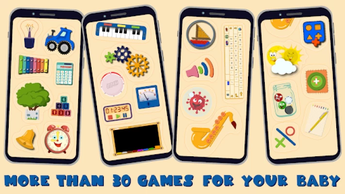 ✔ Musical instruments: piano, xylophone, drums, harp, saxophone, flute - all the sounds of real and high-quality instruments, reveal the musical potential of your baby.