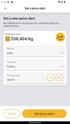 + Set up personalised alerts to let you know when the spot price of gold, silver, platinum or palladium reaches a value you choose.